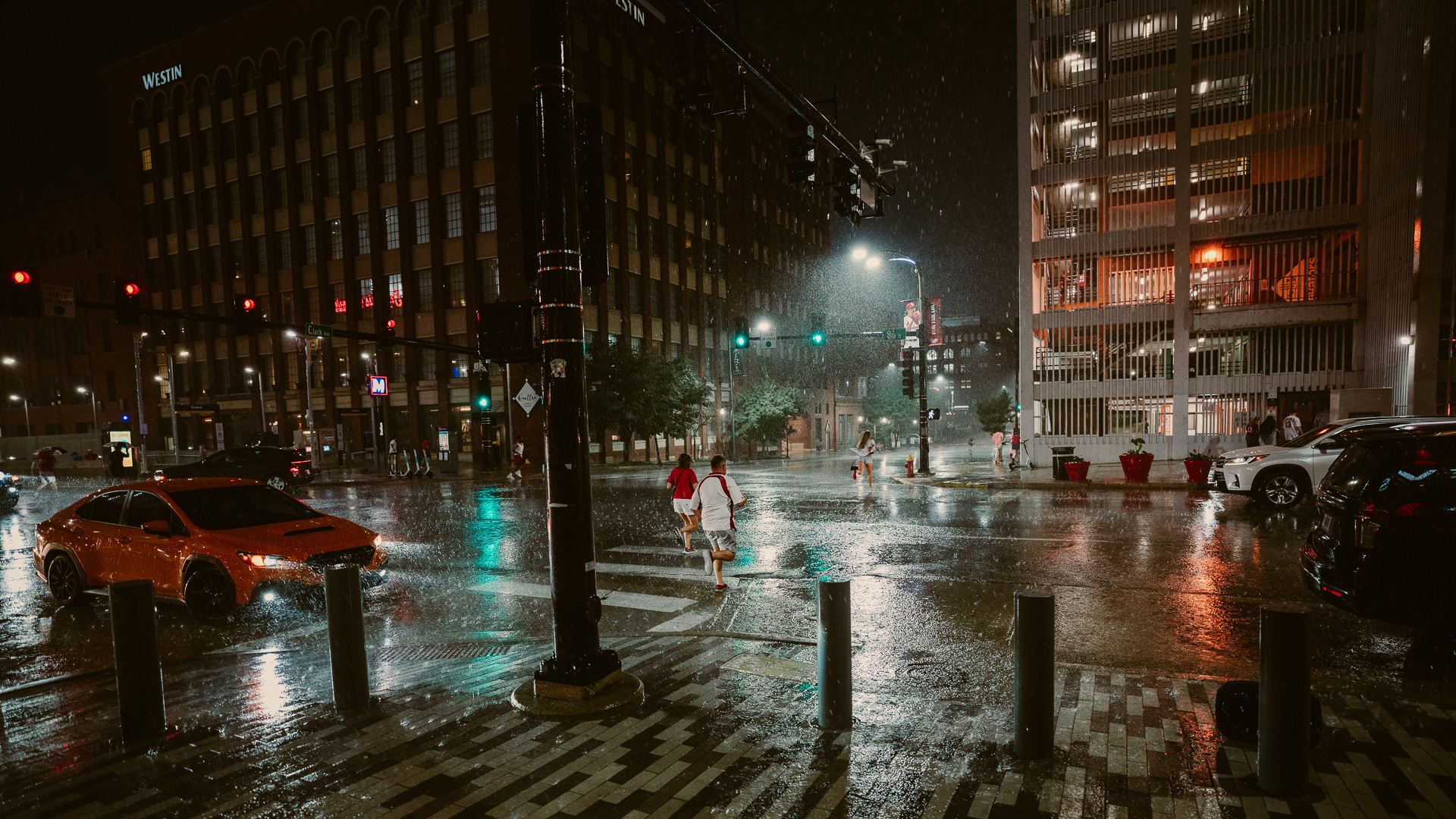 The following day, we embarked on a leisurely stroll through downtown St. Louis, immersing ourselves in the vibrant nightlife.The evening took a turn when rain interrupted the baseball game, forcing everyone to evacuate the stadium. The torrential downpour and strong winds turned umbrellas inside out, making it nearly impossible to stay dry.